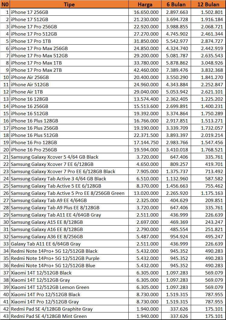 - Stok Handphone dapat berubah sewaktu-waktu sesuai ketersediaan di supplier.